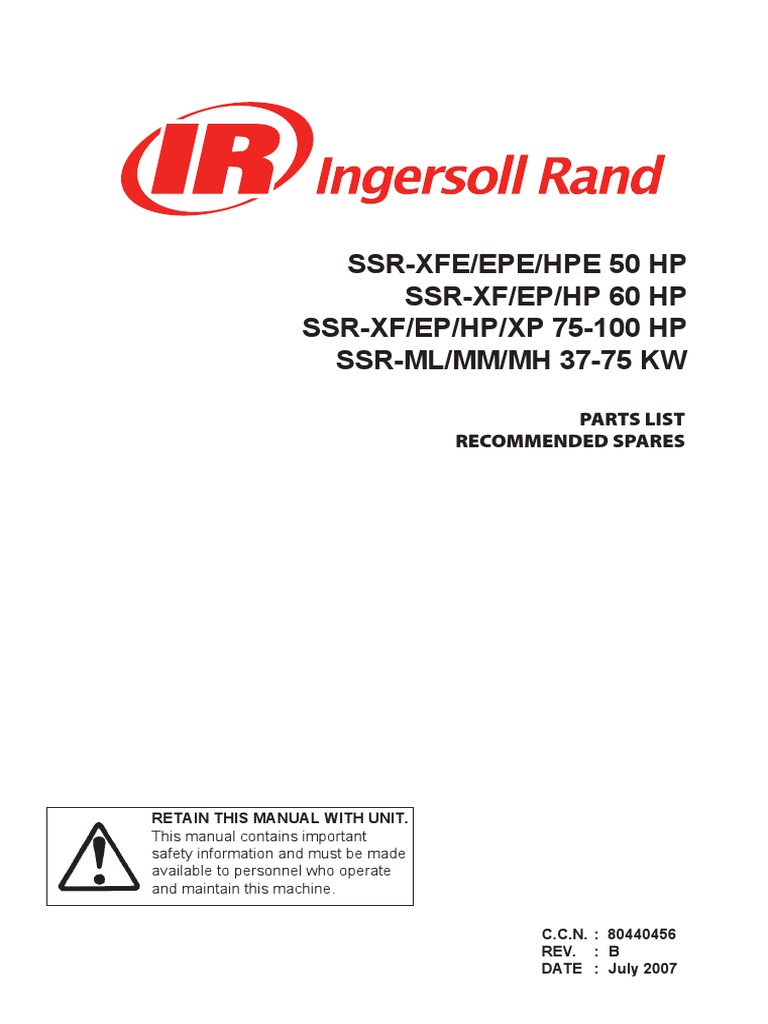 Parts Manual For Ingersoll Rand Ssrep75