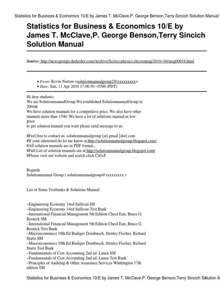 Terry sincich james t mcclave. Statistics for business and economics 10th edition 1350 problems solved. Jul 23 2020 statistics 10th edition mcclave and sincich 33 pdf drive search and download pdf files for free. Statistics for business and economics.