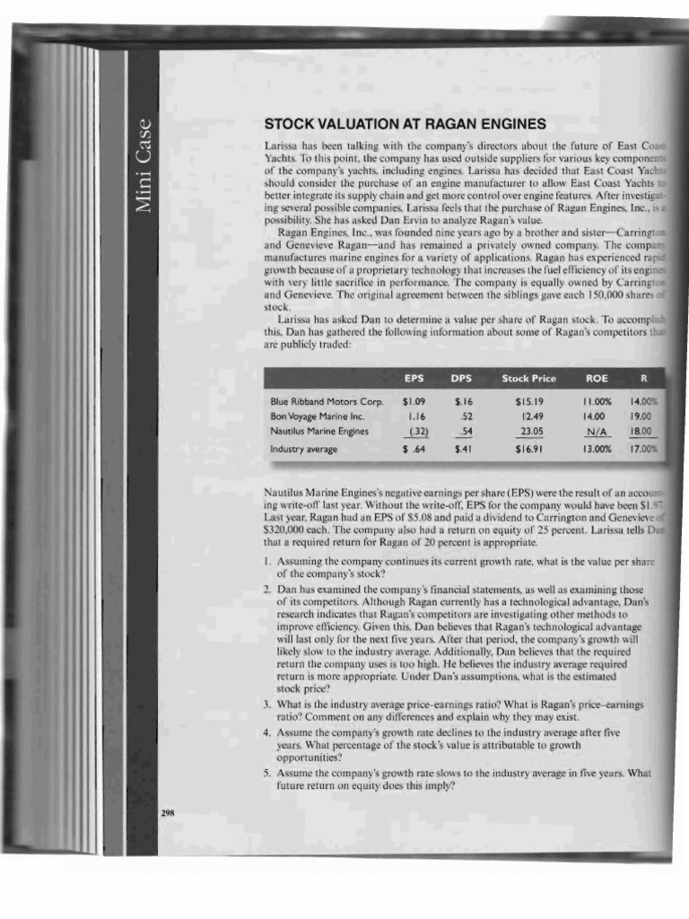 Solved Mini Case Stockvaluation At Ragan Engines 1 Intro