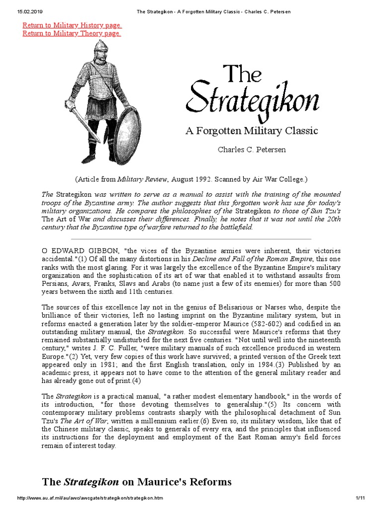 Charles C Petersen Strategikon A Forgotten Military Classic
