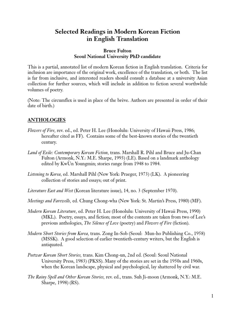 I Have Attached A Pdf Here Korean Modern Literature In Translation
