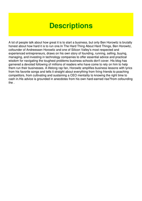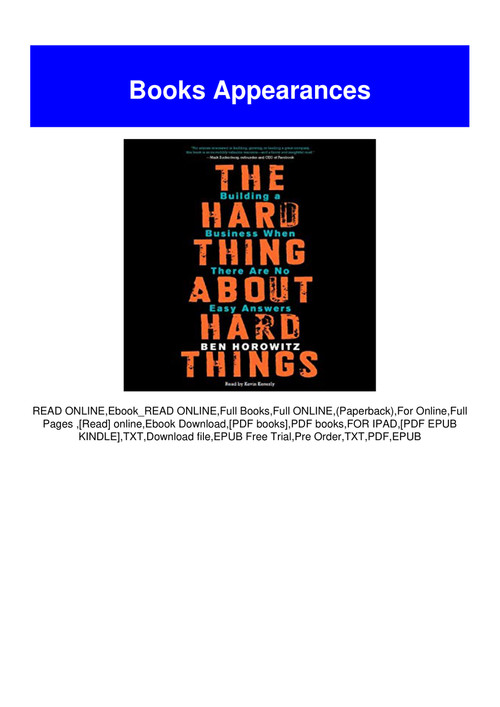 Get Pdf The Hard Thing About Hard Things Building A Business