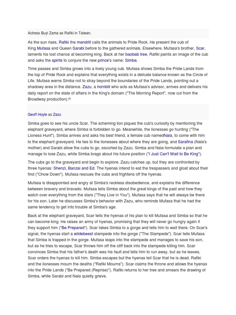 Lion King Broadway Plot Summary