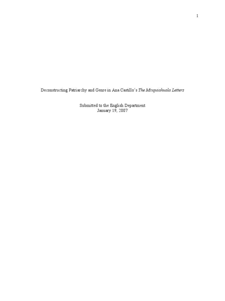 The mixquiahuala letters begins in a traditional epistolary form introducing readers to the main narrative persona teresa and also to the issues of identity that accompany both the 1 yvonne yarbrio bejarano the multiple subject in the writing of ana castillo the americas review 201.