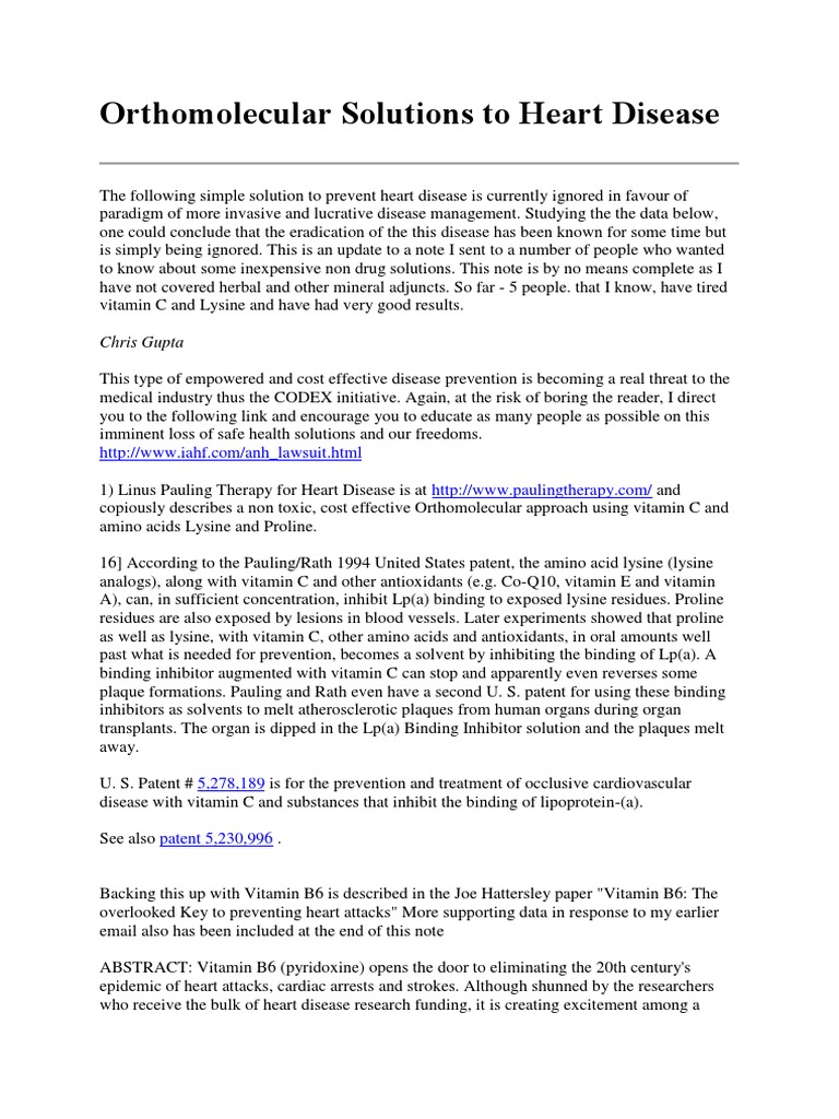 The Orthomolecular Treatment Of Cardiovascular Disease