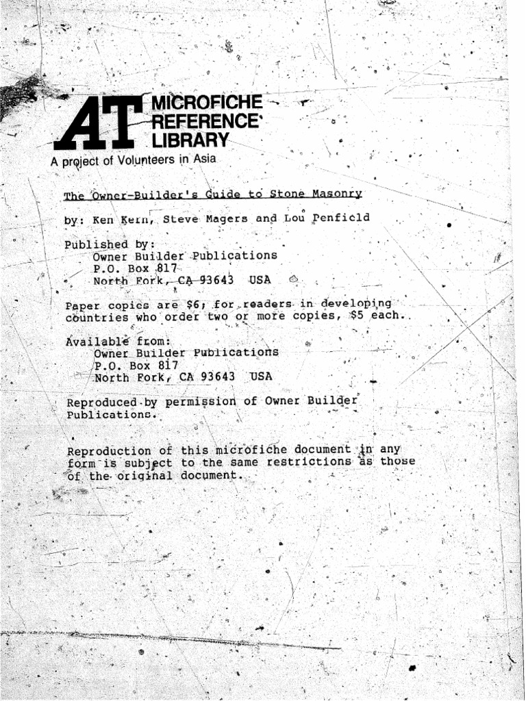 The Owners Builders Guide To Stone Masonry 1976 Pdf