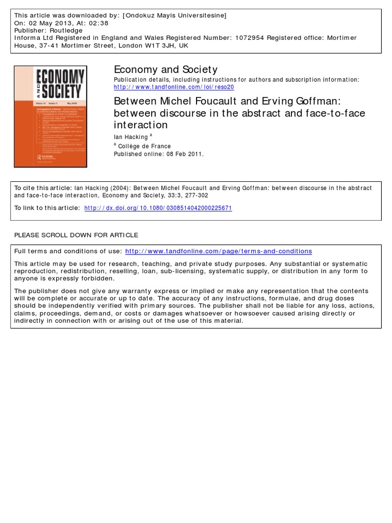 Between Michel Foucault And Erving Goffman Pdf Discourse