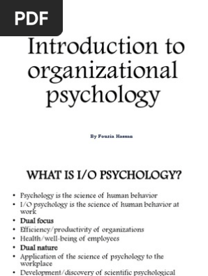 The psychology of behaviour at work by prof. Understanding human behaviour in the workplace. Further sections introduce corporate culture and climate as well as organisational structure change and development. Management science work psychology and common sense 21 knowledge about occupational psychology 25 evolutionary psychology in business 33 theories laws and models in work psychology 36 the direction of causality 39 conclusion 51 2 the history of organizational psychology and the study of work psychology 61 introduction 61 different approaches.