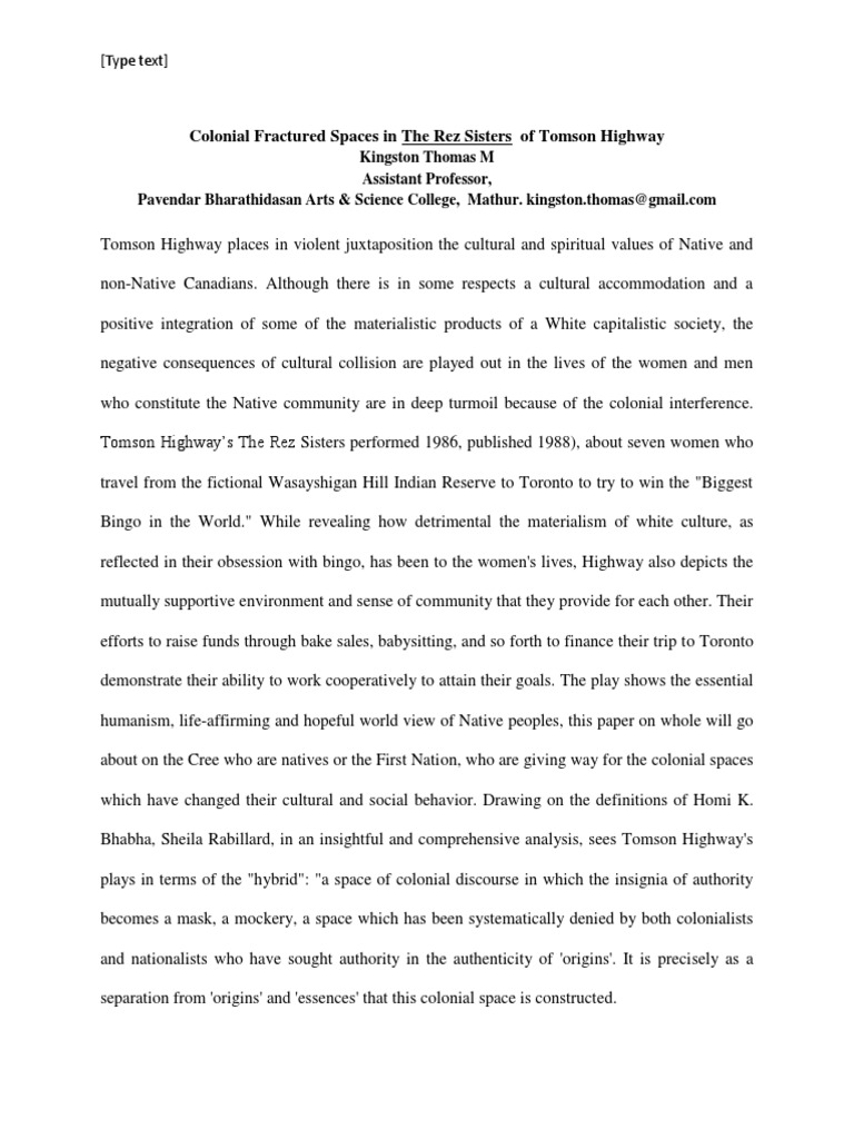 The Rez Sisters College Paper Example July 2020