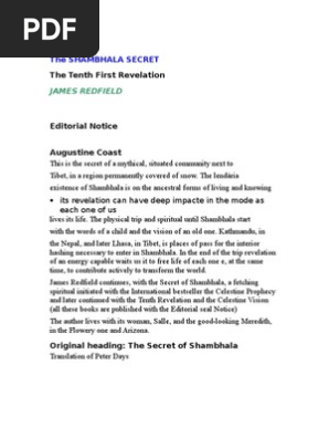 The secret of shambhala in search of the eleventh insight james redfield pdf. It will also leave you determined to channel your thoughts and wishes into a dynamic force that can help you to liberate your life enhance the lives of others and actively. The secret of shambhala. 08082017 this is the third book of the celestine prophecy trilogy. The secret of shambhala by james redfield.