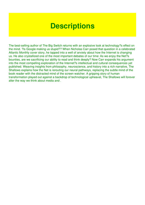 Pdf Download The Shallows What The Internet Is Doing To Our