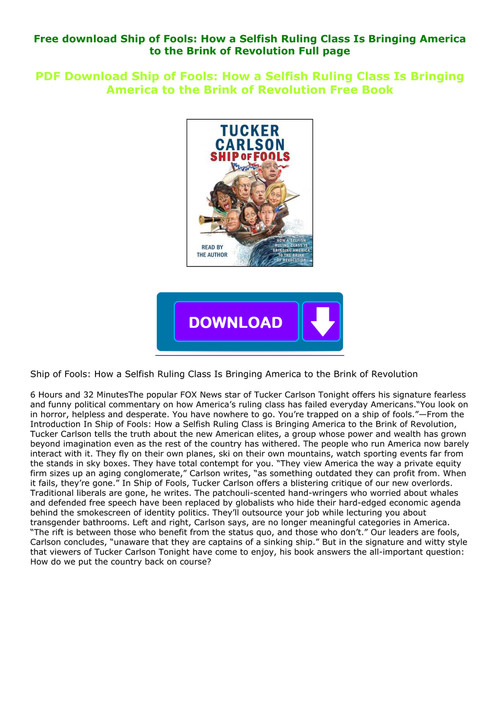 Taylor in pdf epub. Saw your first ship sink and drown from rockin of the boat and all that could not sink or swim. Ship of fools the host of fox news channels tucker carlson tonight offers a blistering critique of the new american ruling class the elites of both parties who have taken over the ship of state leaving the rest of us the citizen passengers to wonder. Ship of fools pdf summary in the aftermath of the metoo blm and other leftist movements conservative values have been put under severe scrutiny and testing.