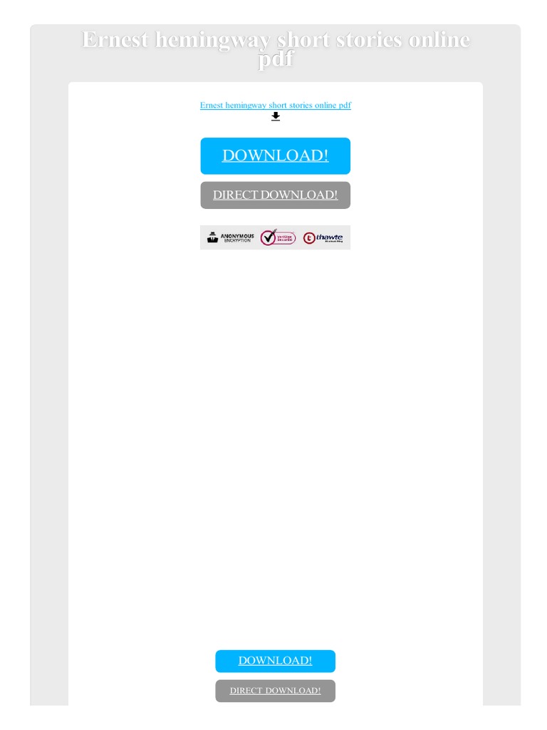 The book was published in multiple languages including english consists of 650 pages and is available in paperback format. The complete short stories of ernest hemingway pdf download the complete short stories of ernest hemingway pdf. I will continue to add to this page as i read more. Short stories of ernest hemingway.