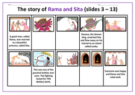 Rama the kings son and rightful heir to the throne lakshmana ramas brother king an old tired man sita ramas wife ravana the demon king with ten heads ramas stepmother the kings wife who wants her own son to be the next king hanuman the monkey king page 1 of 8. The story of rama and sita 1. Sita is kidnapped by ravena and rama goes to rescue her. One day rama and sita were banished from their home by the.
