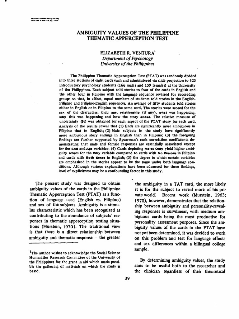 06 Ambiguity Values Of The Philippine Thematic Apperception Test