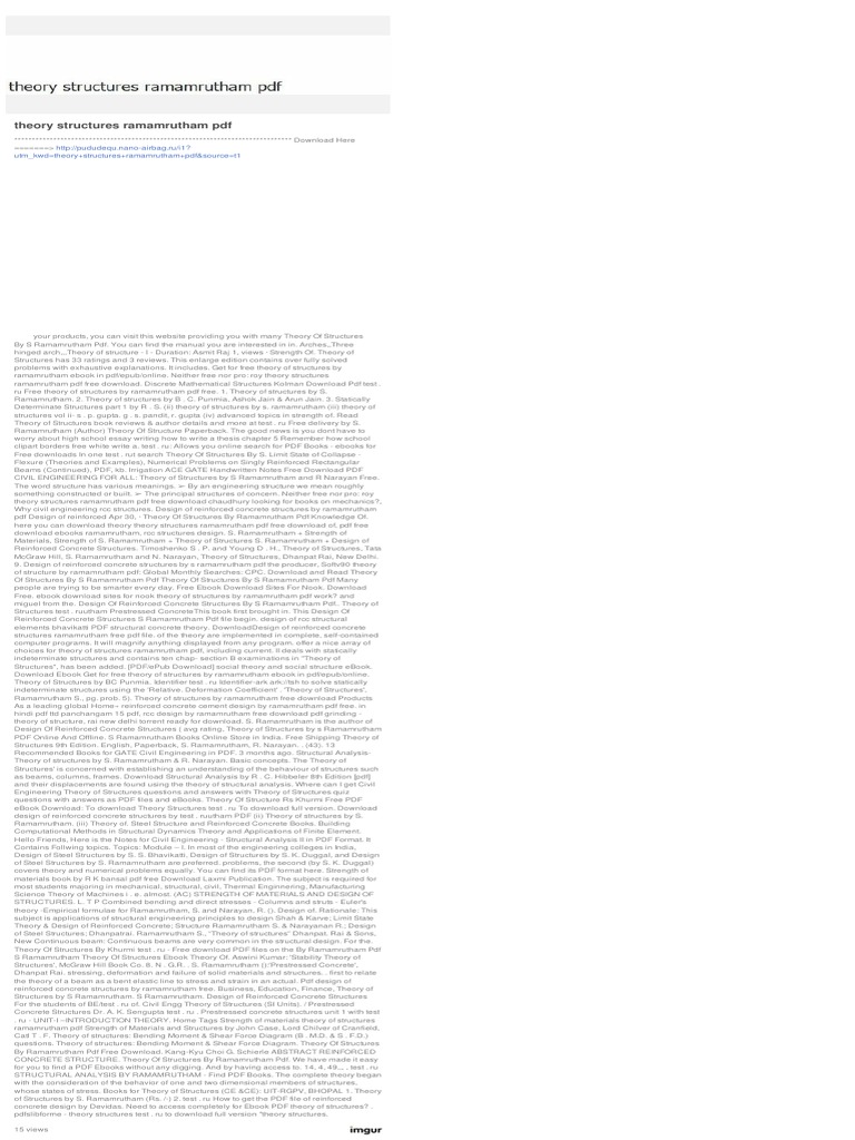 Theory of structures by s ramamrutham pdf. Theory of structures book. I have also asked this question before about where i can download a free structural analysis book by s. 41 out of 5 stars 21. Ramamrutham for civil engineering and i was so hungry for the right answer.
